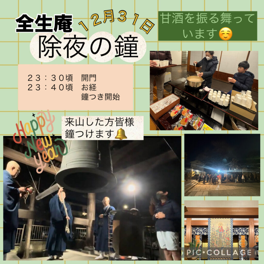 一、除夜の鐘 一日午前〇時より